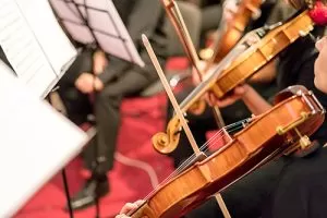 Students performing in Orchestra, Chorus, and Piano Classes in the 1990s with Orchestra Director: Ian Johnson.